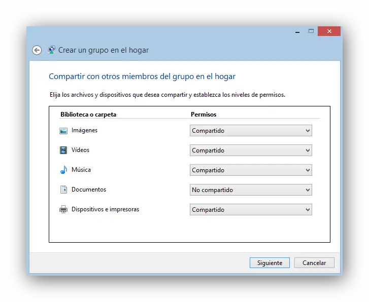 Et un assistant apparaîtra. Nous cliquons sur suivant et nous choisirons les éléments que nous voulons partager.