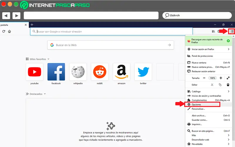 - Pour démarrer cette procédure, vous devez accéder au navigateur et sur sa page principale, vous devez sélectionner les trois lignes verticales qui apparaissent dans la partie supérieure droite de votre écran.
