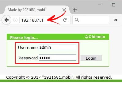 - Accédez à partir de n’importe quel ordinateur connecté au réseau avec le navigateur et entrez l’adresse suivante dans la barre de votre navigateur et appuyez sur la touche » Entrée » du clavier, comme indiqué: 192.168.1.1