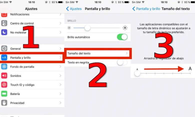 - Vous devez choisir «Texte plus grand» où plusieurs polices plus grandes vous seront présentées.
