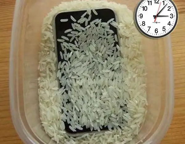 Comme nous l’avons déjà mentionné, cette astuce est la plus courante et, par conséquent, les gens choisissent presque toujours de la mettre en œuvre lorsque leur mobile est mouillé. Ce qui consiste essentiellement à placer une certaine quantité de riz dans un récipient (cette quantité devrait être suffisante pour couvrir complètement l’appareil), après cela, il vous suffit d’insérer le téléphone dans le récipient et de le laisser le recouvrir complètement.