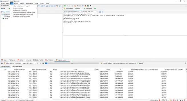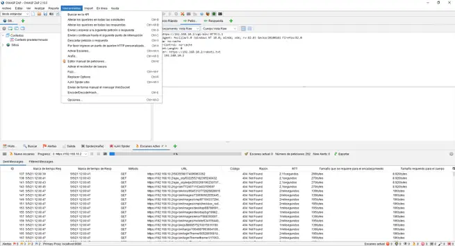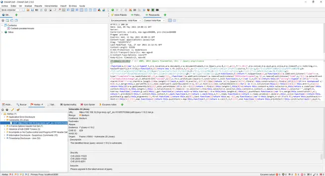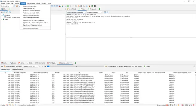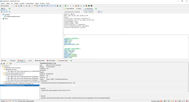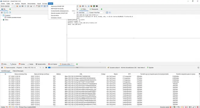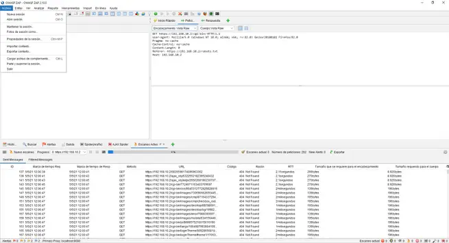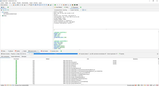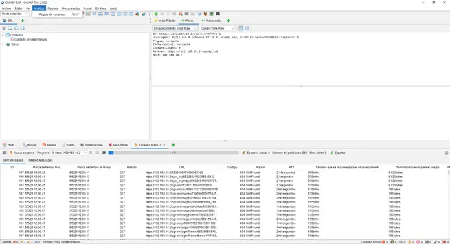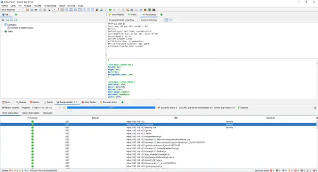 Dans notre cas, nous avons attaqué le serveur Web d’un serveur NAS QNAP mis à jour vers la dernière version. Nous pourrons voir de nombreuses requêtes GET et POST du service HTTP / HTTPS lui-même. Dans la partie inférieure gauche, nous verrons toutes les alertes que nous avons, en cliquant sur chacune d’elles, nous pouvons voir dans la partie droite quel type de vulnérabilité ou d’erreur nous avons localisé, et dans la partie supérieure, nous verrons tout brut.