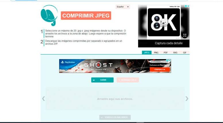 Un outil très populaire parmi les utilisateurs car vous pouvez télécharger des fichiers depuis Dropbox ou Google Drive . Sélectionnez les images et faites-les glisser vers la zone de travail de la page pour obtenir les résultats. Il est utilisé pour compresser les images JPG ou JPEG.