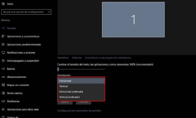 Il convient de noter que même avec l’écran pivoté, vous pouvez continuer à l’utiliser, car il continue de fonctionner normalement mais c’est un peu inconfortable. C’est pourquoi il est important que vous sachiez comment en changer la signification, cela peut être réalisé via la page de configuration de Windows 10. Si vous le souhaitez, vous pouvez bloquer le panneau de configuration ou la configuration.
