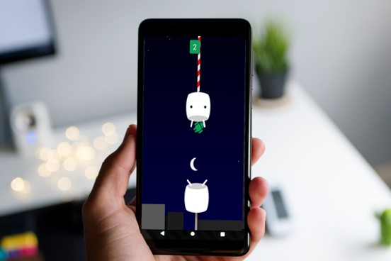 Dans cette version d’Android, c’était là que nous pouvions trouver les œufs de Pâques même en dehors du menu, en d’autres termes, ils étaient plus faciles à trouver, simplement en appuyant sur l’écran pendant quelques secondes, nous pouvions déjà en voir un, par exemple dans cette version nous avons vu le jeu Bean Flinger, avec des effets spéciaux de Daydream.
