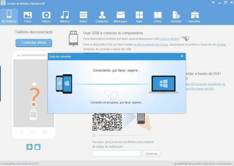 4. Il permet la connexion via Wifi de manière très simple, nous n’avons qu’à activer le Wifi sur notre appareil, nous chercherons parmi les appareils de connexion Wifi l’option «Apowersoft» et nous nous appairerons avec elle.