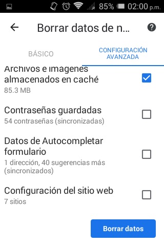 - Une fois que nous aurons évalué et choisi les paramètres en fonction de nos besoins, nous cliquons sur le bouton «Effacer les données», situé dans le coin inférieur droit.