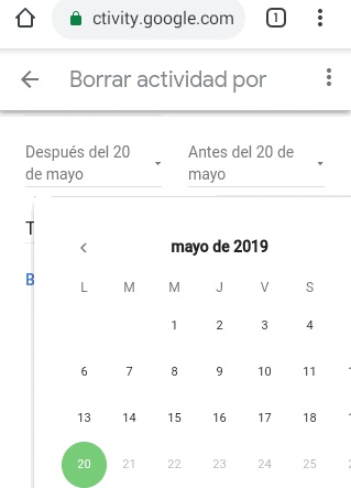 - Mais aussi, ci-dessous, nous voyons deux options de calendrier, une pour le début et une pour la fin des dates plus spécifiques à supprimer, ceci au cas où nous aurions besoin de quelque chose de spécifique afin de ne pas avoir à tout supprimer.