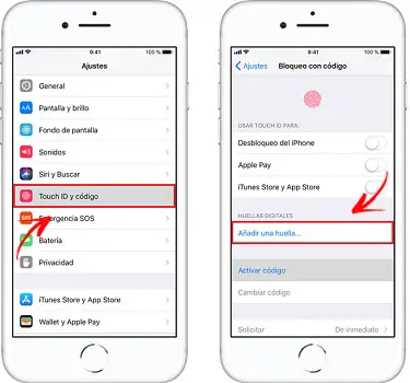- Comme dans ce cas, ce que vous voulez, c’est activer le «Touch ID» est l’option que nous allons sélectionner. Lors de la saisie, le code que vous avez créé au début des étapes vous sera demandé.