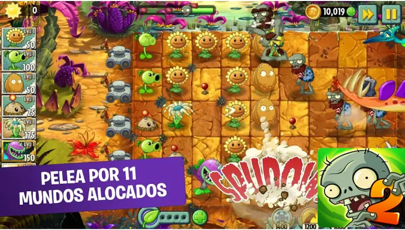 Entre autres fonctionnalités du jeu Plants vs Zombies 2 , il facilite un voyage dans l’espace-temps, où vous devez vous battre dans 11 mondes fous et surmonter environ 300 niveaux , tous plus impressionnants les uns que les autres. L’application est également basée sur la culture de plantes puissantes en gagnant des paquets de graines pendant que vous jouez et en les utilisant pour doubler vos défenses, accélérer le temps et améliorer vos compétences .
