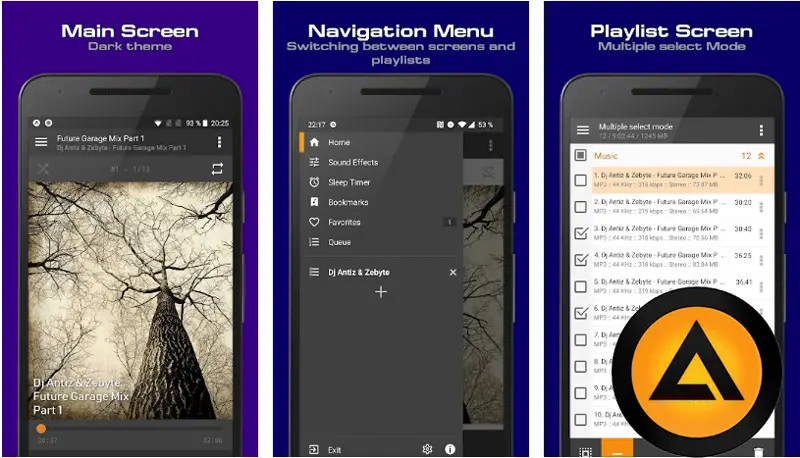 Ce programme a plus de 6 bandes d’égalisation pour la lecture , ainsi que la fonctionnalité de prise en charge des paroles intégrées, d’écoute de musique sans pause, de téléchargement de couvertures, d’écoute de radio, de minuterie, de widgets et de thèmes à personnaliser.