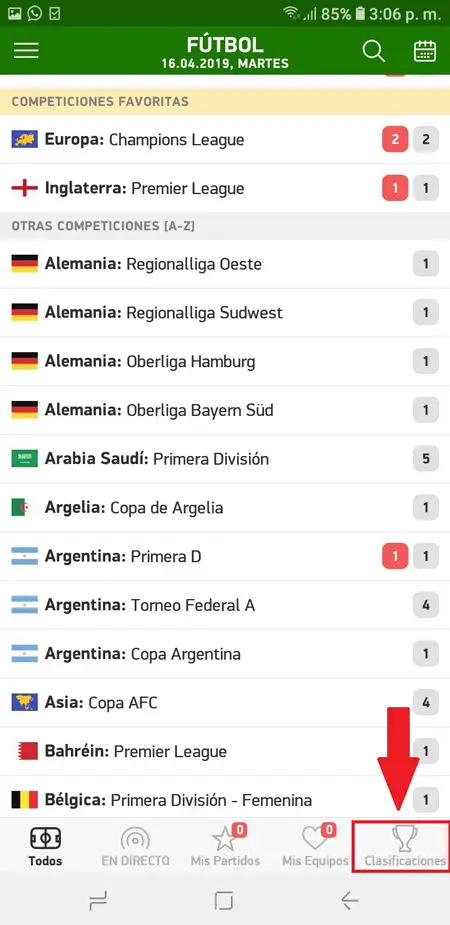 - Et la deuxième option que nous avons est d’aller directement à la compétition dont vous voulez voir le calendrier, vous pouvez le faire via le menu «Classifications».