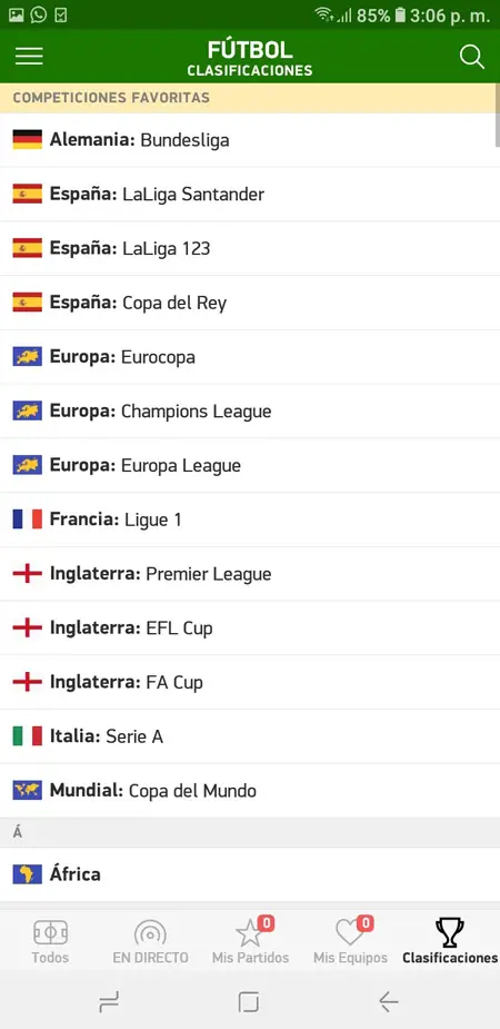 Il est à noter que cette application est principalement basée sur le football (le roi du sport pour beaucoup) , de telle sorte que c’est un outil idéal pour tous les fans de ce sport, où vous pourrez suivre de près vos équipes, ligue ou compétition.
