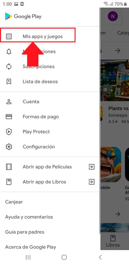 - Dans le menu qui y apparaît, vous devez sélectionner l’option «Mes applications et jeux».