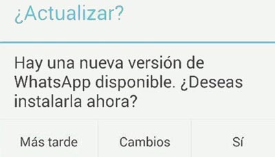 Étape 1: Comme d’habitude, notre application de messagerie préférée nous informera automatiquement de l’existence d’une nouvelle mise à jour lorsque nous l’ouvrirons sur notre smartphone avec le système d’exploitation Windows avec le message suivant.
