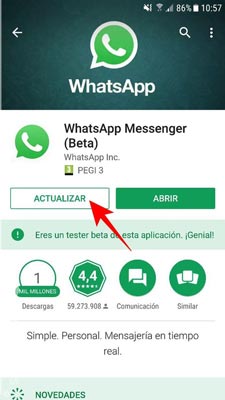 Eh bien, nous avons de la chance et s’il y a une nouvelle version, alors nous appuyons sur le bouton » Mettre à jour » et le téléchargement de l’application commence automatiquement, la vitesse de téléchargement dépendra de la connexion Internet que nous avons à ce moment-là, bien que ce ne soit pas le cas prendre trop de temps. Et voila, vous avez déjà la nouvelle version installée et en cours d’exécution sur votre smartphone Android, c’est simple!