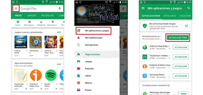 Si vous souhaitez conserver toutes les applications dans la dernière version disponible afin qu’il n’y ait aucun problème avec la sécurité de l’appareil et pour obtenir un bon fonctionnement des applications, nous vous conseillons de faire ce qui suit. Ces étapes permettent de savoir de manière massive et d’un seul coup d’œil combien d’applications ont une nouvelle version et de pouvoir les télécharger pour le moment.