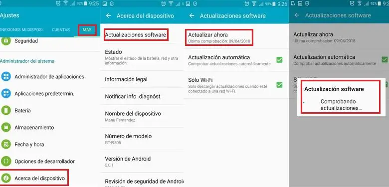Voici la méthode la plus simple pour trouver et installer les mises à jour du système d’exploitation rapidement et facilement, sans aucun problème. Les nomenclatures peuvent changer en fonction du pays et de la version que nous avons installée sur notre smartphone.