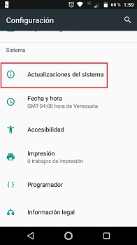 - Faites défiler l’écran jusqu’à ce que vous obteniez l’option «Mises à jour du système» et cliquez dessus.
