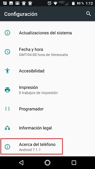 - Faites défiler l’écran jusqu’à ce que vous obteniez l’option «À propos du téléphone». Cliquez dessus.