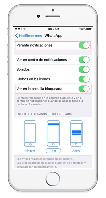 - Sous iOS, il suffit d’entrer les «Paramètres» de l’outil suivi de «Notifications», là nous allons activer les «Aperçu» et «Afficher les notifications».
