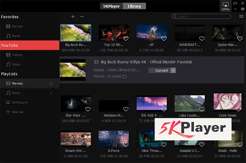 En plus de cela, 5K Player prend en charge la lecture en streaming et offre les outils nécessaires pour télécharger des vidéos à partir de différentes plates-formes. Parmi lesquels se trouvent YouTube, Facebook, Instagram, Vimeo, DailyMotion, UStream, MTV, etc. De même, le programme vous permet d’écouter la radio, il est compatible avec AirPlay et DLNA, il émet une reproduction sonore de haute qualité , entre autres.