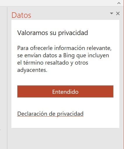 Ainsi, lorsque nous avons des doutes sur un contenu textuel que nous saisissons, nous devons aller dans l’option de menu «Révision». Sur le côté gauche de l’interface, nous trouverons un bouton qui nous donnera accès à la fonction «Smart Search» susmentionnée. Il est à noter que la première fois que nous l’utilisons, il demandera notre autorisation, car pour tout cela, son propre contenu sera envoyé au moteur de recherche Bing .