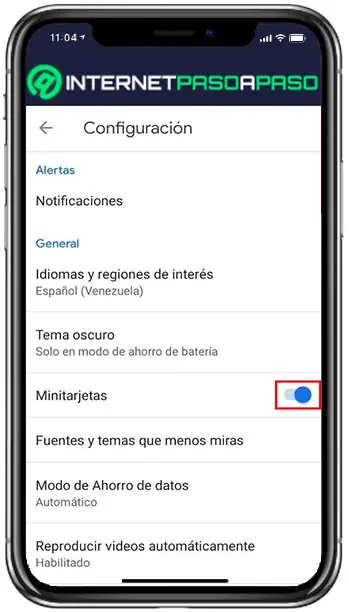 - Nous sélectionnons le bouton qui dit «Mini cartes» pour l’ activer.