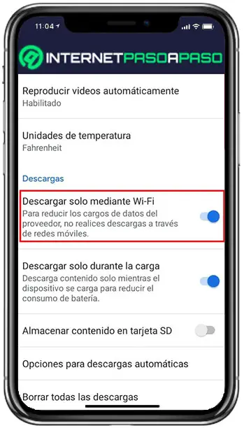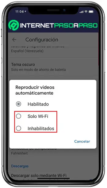- Ensuite, nous nous assurons que l’option de téléchargement Wi-Fi uniquement est activée. Où il est dit » Lire les vidéos automatiquement «. Nous choisissons entre «Wi-Fi uniquement» ou «Désactivé» de cette manière, nous nous assurerons que notre forfait de données ne s’épuise pas rapidement.