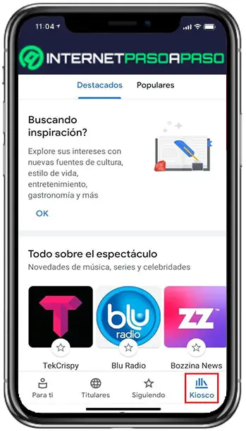 La section d’exploration est dans l’onglet » Kiosque «, c’est la section pour les utilisateurs qui aiment lire comme passe-temps. Eh bien ici, le lecteur pourra trouver des lectures sur les nouveaux modes de vie, la nourriture, la musique, entre autres contenus un peu plus éloignés de l’impact quotidien. Dans l’image suivante, nous verrons un exemple de certaines catégories à lire.