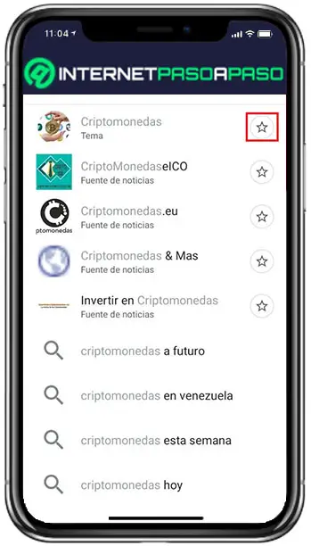 Pour définir un sujet comme favori, il faut entrer dans l’onglet «Suivant» , cliquer rapidement sur «Suivre les sujets» , y écrire le sujet d’intérêt et le marquer avec l’étoile.