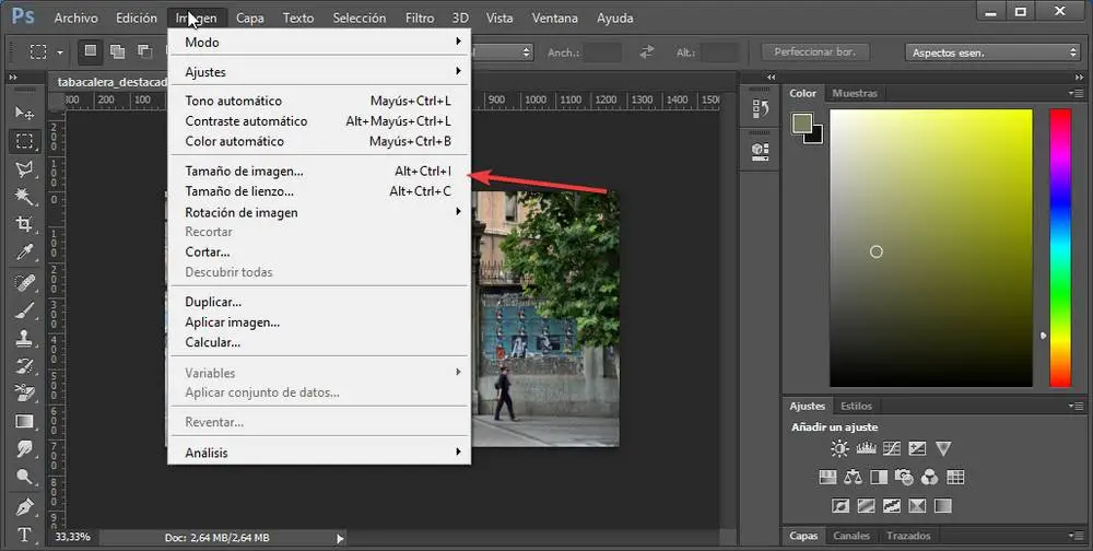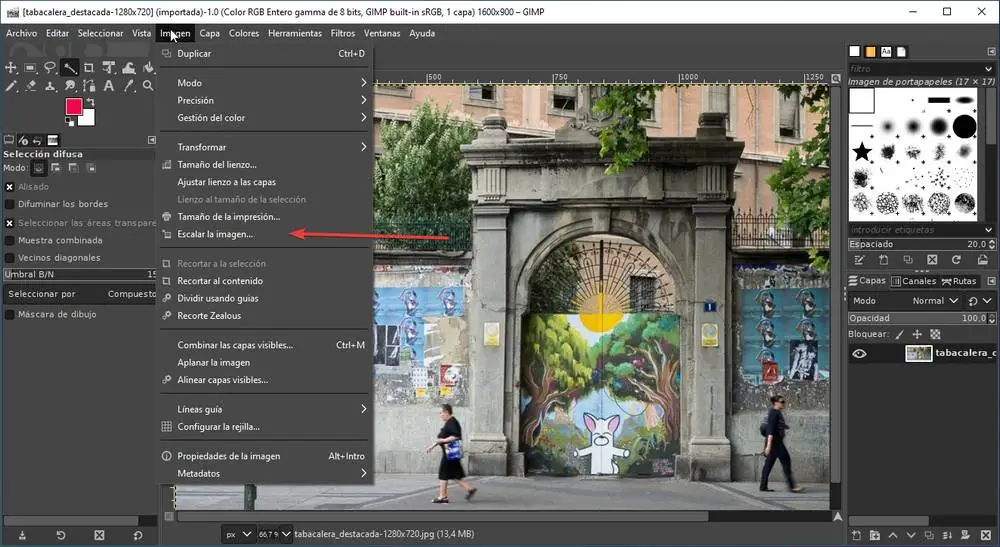 La première chose que nous devons faire, après avoir ouvert le programme et l’image que nous voulons agrandir, c’est aller dans le menu «image» et cliquer sur «redimensionner l’image»