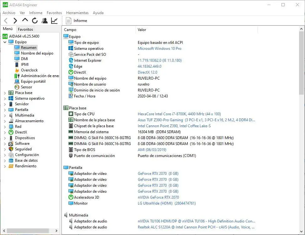 La plupart des utilisateurs qui utilisent des ordinateurs, qu’ils soient portables ou de bureau, n’ont pas une compréhension détaillée de leur matériel informatique. Ou, s’ils le font, ils savent ce qu’il faut, c’est-à-dire la quantité de mémoire, le type de processeur, les disques durs et rien d’autre. Cependant, connaître en détail le matériel de notre ordinateur est indispensable lors du renouvellement de certains composants ou, en cas de panne, pouvoir remplacer la pièce endommagée par une pièce compatible. Et pour connaître tous les détails de notre ordinateur, le programme le plus complet que l’on puisse trouver est AIDA64.