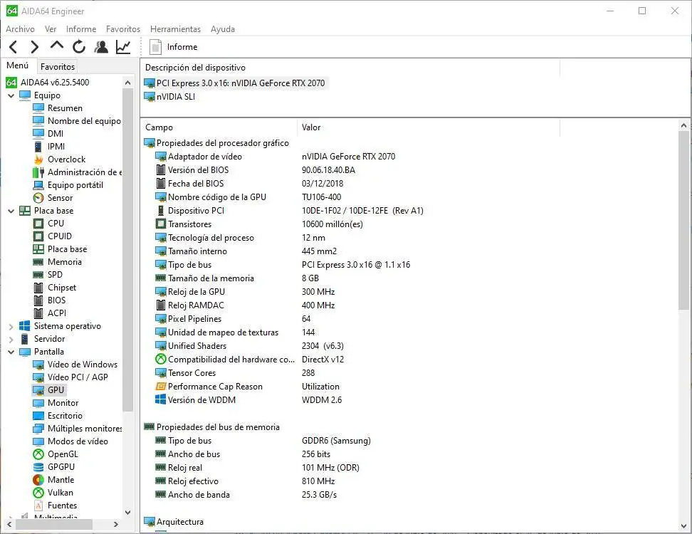 Et la même chose avec le reste des catégories, à la recherche du composant dont nous voulons connaître tous les détails. Les informations de chacun des composants sont les plus complètes.
