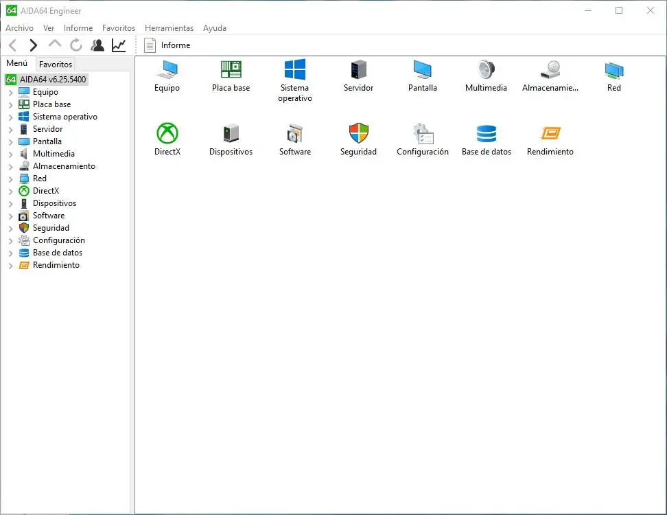 La fonction principale de ce logiciel est de nous faire tout savoir sur le matériel de notre PC. Comme nous pouvons le voir, dans sa fenêtre principale, nous pouvons trouver une série de catégories, dans lesquelles nous pouvons trouver tous les détails techniques sur chacun des composants du PC.