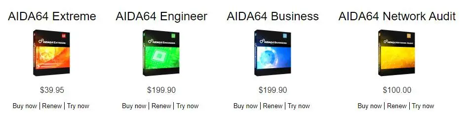 AIDA64 propose aux utilisateurs 3 éditions différentes.