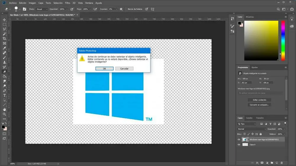 Nous acceptons le message qui apparaît et cette couche sera déjà un objet intelligent que nous pouvons éditer sans problème. Si nous utilisons le caoutchouc, par exemple, nous pouvons effacer le contenu qui ne nous intéresse pas d’être vu dans notre projet. Cependant, il est difficile d’effacer, par exemple, un fond blanc à l’aide de la gomme.