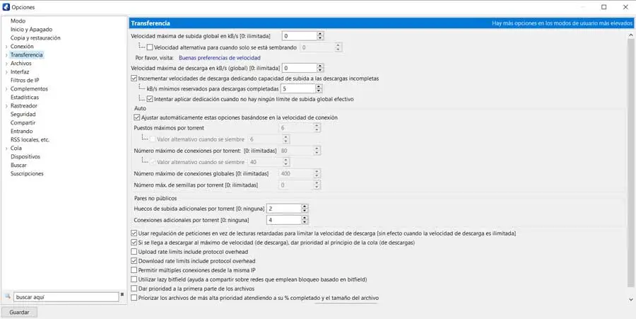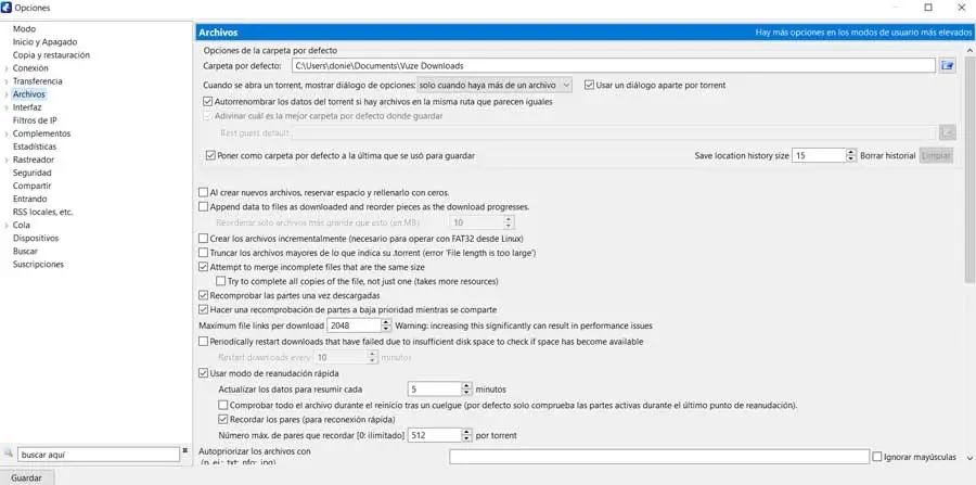 Il faut garder à l’esprit que ce type de logiciel est initialement configuré pour que l’on puisse le mettre en service dès le premier instant. Cependant, si nous voulons que cela fonctionne de manière plus efficace et plus rapide, il est préférable de procéder à des ajustements. Nous entendons par là que les utilisateurs qui le souhaitent peuvent apporter des modifications à leur configuration pour adapter le programme à leurs besoins. Pour tout cela, le logiciel lui-même propose généralement des paramètres personnalisables, comme c’est le cas avec Vuze / Azureus .