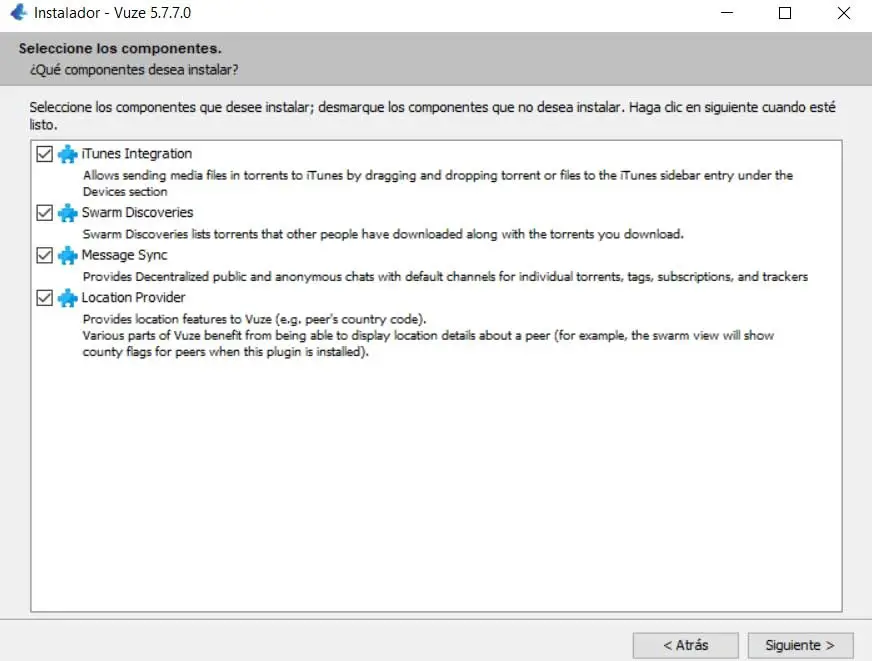 Gardez à l’esprit qu’il s’agit d’un programme qui prend en charge l’installation de modules complémentaires qui augmentent ses fonctionnalités . Par conséquent, la même entrée et dans le processus d’installation, nous en propose déjà certaines qu’elle ajoute par défaut et que nous vous recommandons de conserver, au moins dans un premier temps. C’est quelque chose que nous pouvons changer plus tard, ainsi qu’en ajouter de nouveaux.