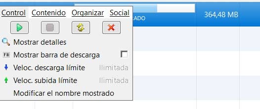 Il est à noter que pour mieux gérer le torrent en tant que tel pendant son téléchargement, ce que nous pouvons faire est de cliquer dessus avec le bouton droit. Cela cédera la place à une série d’options afin que nous puissions voir ses détails ou les limites de téléchargement et de téléchargement établies pour celui-ci.