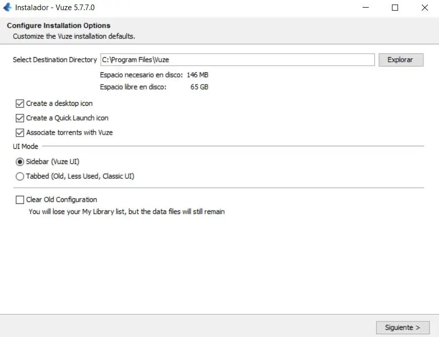 Ensuite, nous trouverons une nouvelle fenêtre dans laquelle nous sommes informés du chemin dans lequel le programme sera installé, ainsi que de sa taille. C’est quelque chose que nous pouvons configurer et modifier logiquement. À son tour, nous trouvons ici également une série d’options qui nous permettent de spécifier les raccourcis à créer, ainsi que l’apparence générale de l’interface utilisateur.