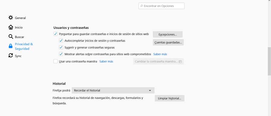 Alors que certains utilisateurs, ou une bonne partie d’entre eux, considèrent que cela peut devenir un problème de confidentialité, les navigateurs le font par défaut, du moins la plupart. Ses développeurs le justifient en disant qu’avec tout cela l’expérience utilisateur avec ces programmes est améliorée, mais cela reste peu convaincu. C’est pourquoi, à leur tour, ils nous permettent d’utiliser une série de fonctions intégrées qui nous permettent de personnaliser ce dont nous parlons.