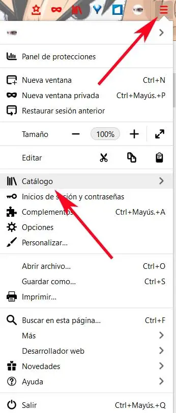 Ainsi, si nous nous concentrons sur le cache Firefox, la première chose que nous faisons est d’accéder au menu principal du programme. Ce bouton est situé dans le coin supérieur droit et est représenté par trois lignes horizontales.