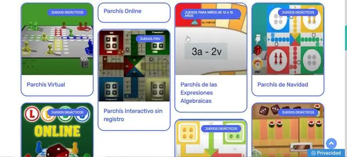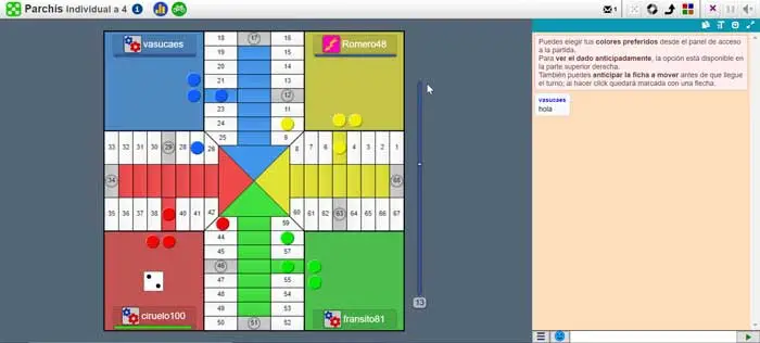 Nous sommes face à un site Web renommé qui contient plus de 60 jeux en ligne , parmi lesquels on peut trouver des dominos, des jeux de cartes comme Chinchón et Mus, des échecs, 4 d’affilée et bien sûr Parcheesi, à la fois individuellement et en équipe, un contre un ou trois contre trois, parmi de nombreux autres matchs. Ce site Web se caractérise par sa facilité de manipulation et son système rapide de localisation de jeux en fonction de nos goûts. Nous pouvons jouer à Parcheesi de manière classique avec des amis et des inconnus en entrant dans n’importe quelle pièce créée ou en créant la nôtre. De plus, il a la possibilité de prévisualiser le prochain tour , ce qui laisse plus de temps pour réfléchir au mouvement et accélère ainsi le jeu.