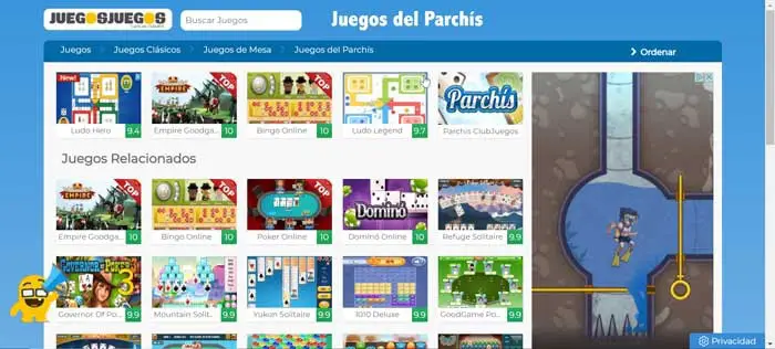 Que vous souhaitiez jouer avec des amis ou des inconnus, le site JuegosJuegos propose d’innombrables jeux de toutes sortes, organisés par catégories telles que Logic, Racing, Action, Skills et bien sûr Classics, où nous pouvons trouver Parcheesi avec un grand nombre d’autres jeux .de jeux. Pour le trouver, nous pouvons facilement utiliser le moteur de recherche en haut, en entrant Parcheesi. Cela nous permet de faire quelques options de configuration , ainsi que de lire les règles et le nombre de joueurs. Son principal inconvénient est qu’il peut afficher de la publicité avant de démarrer le jeu, ce qui peut être un peu gênant, et parfois il faut trop de temps pour se connecter au jeu.