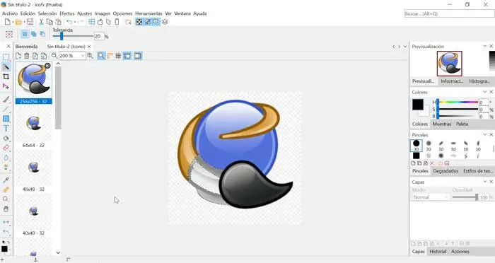 Si nous sélectionnons l’option «Icône Windows à partir de l’image», cela nous demandera de choisir une image de notre ordinateur pour pouvoir la modifier à notre guise afin qu’elle devienne une nouvelle icône. Maintenant, nous pouvons utiliser les outils de n’importe quel programme d’édition comme la baguette magique, le flou, inclure le remplissage de couleur, ainsi ajouter des calques, les organiser et changer leur opacité.