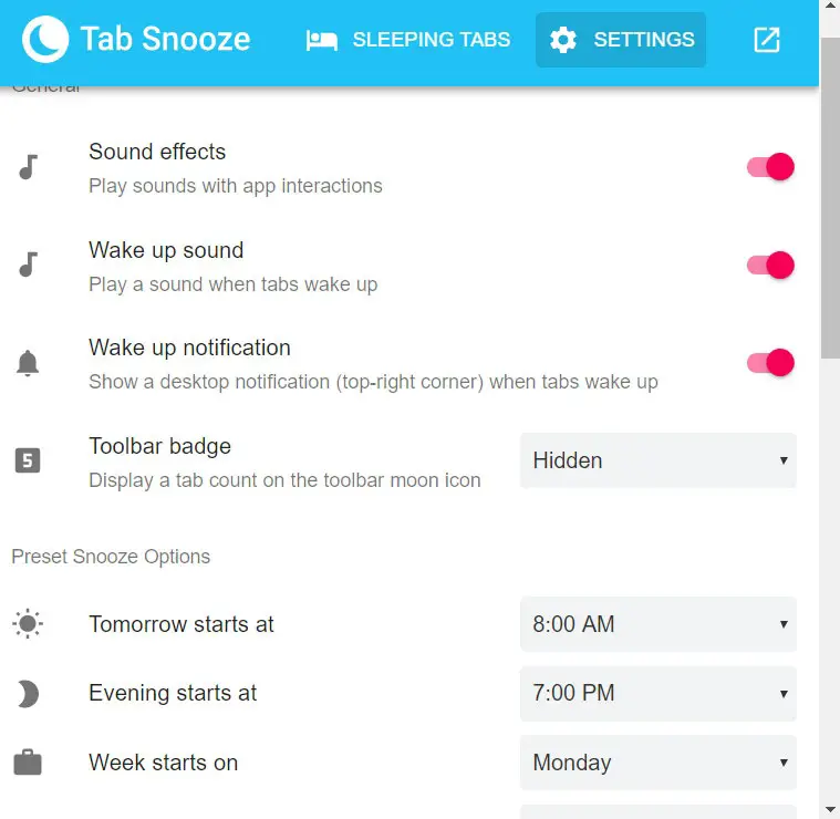 Es evidente que una vez guardado un determinado contenido en Tab Snooze, podremos cambiar su configuración, es decir, momento de reaparición, tipo de sonido, notificación, etc.