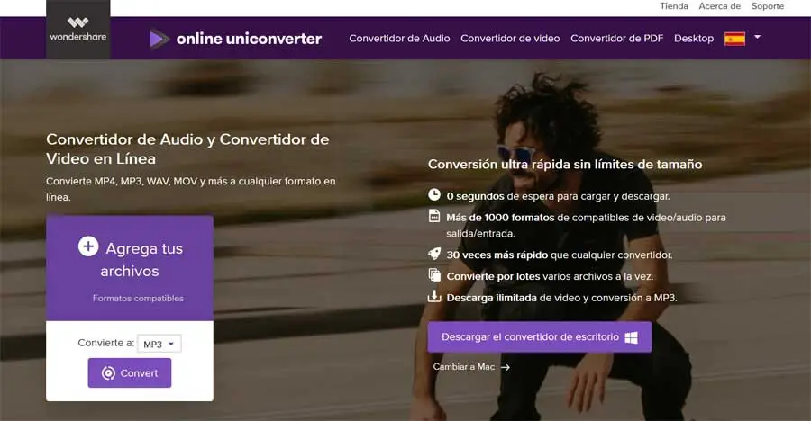 Et enfin, nous mentionnerons une autre alternative qui sera très utile lors de la conversion de fichiers audio au format MP3 . Il s’agit de Online Uniconverter, une application Web que vous pouvez utiliser à partir de son URL officielle et qui se concentre sur la conversion de tout ce que nous téléchargeons en MP3. Et c’est le format sonore le plus utilisé, d’où la simplicité qu’il propose.