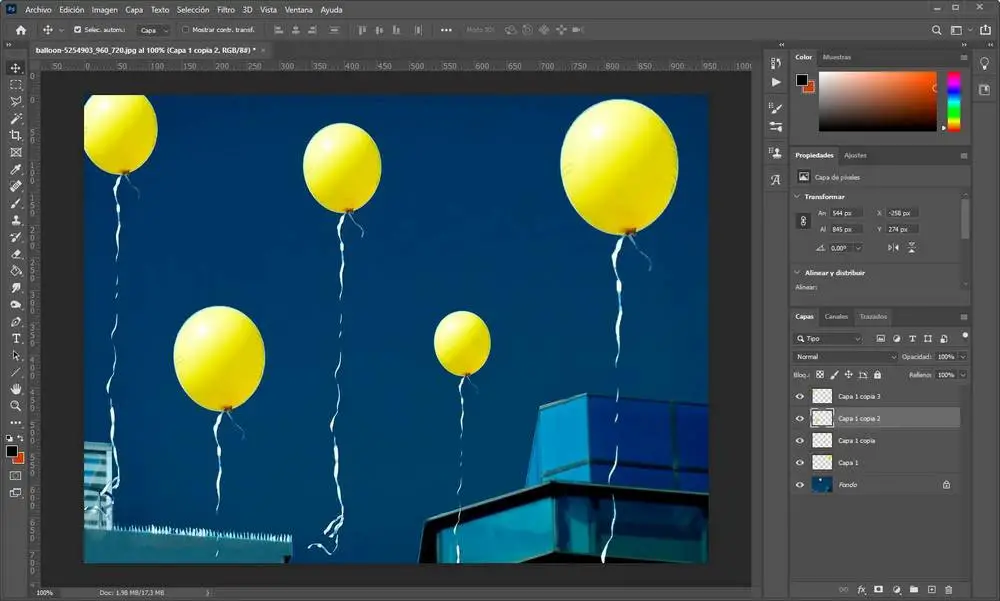 De plus, si nous le voulons, nous pouvons profiter de la duplication du calque cloné, qui contient l’objet sélectionné, pour ajouter plusieurs copies du même objet à l’image. Et même avec le raccourci clavier Ctrl + T , nous pouvons changer la taille de n’importe quel élément que nous voulons.