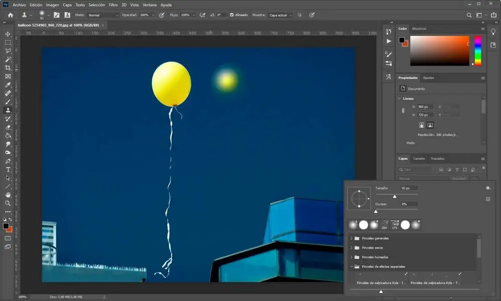 Une fois l’origine sélectionnée, nous relâchons la touche Alt et déplaçons la souris vers le point de l’image où nous voulons la cloner. Comme nous le verrons, en fonction de la taille du pinceau, nous pourrons apprécier une ombre qui indiquera à quoi ressemblera l’image lorsque nous cliquons pour la cloner.